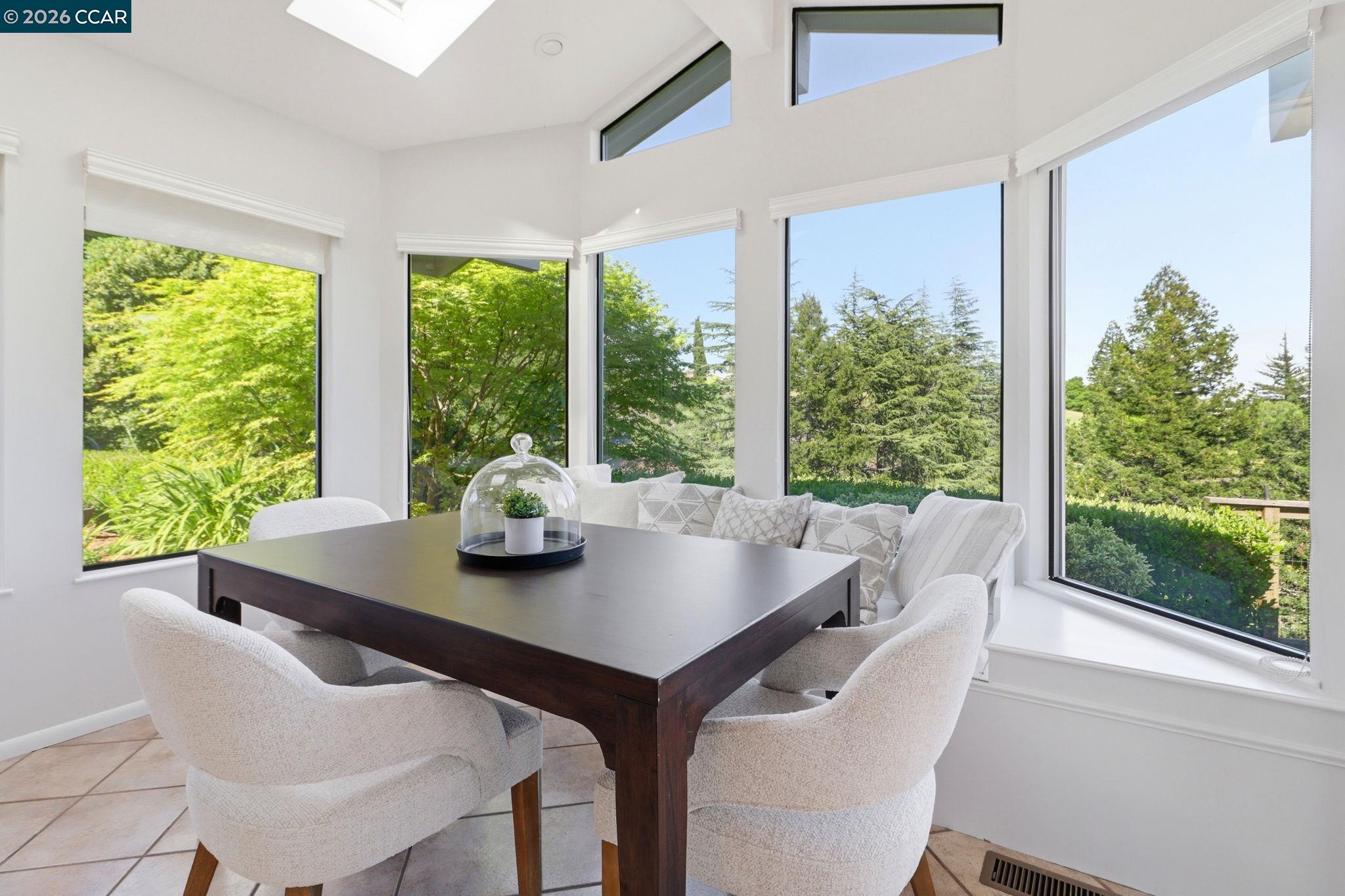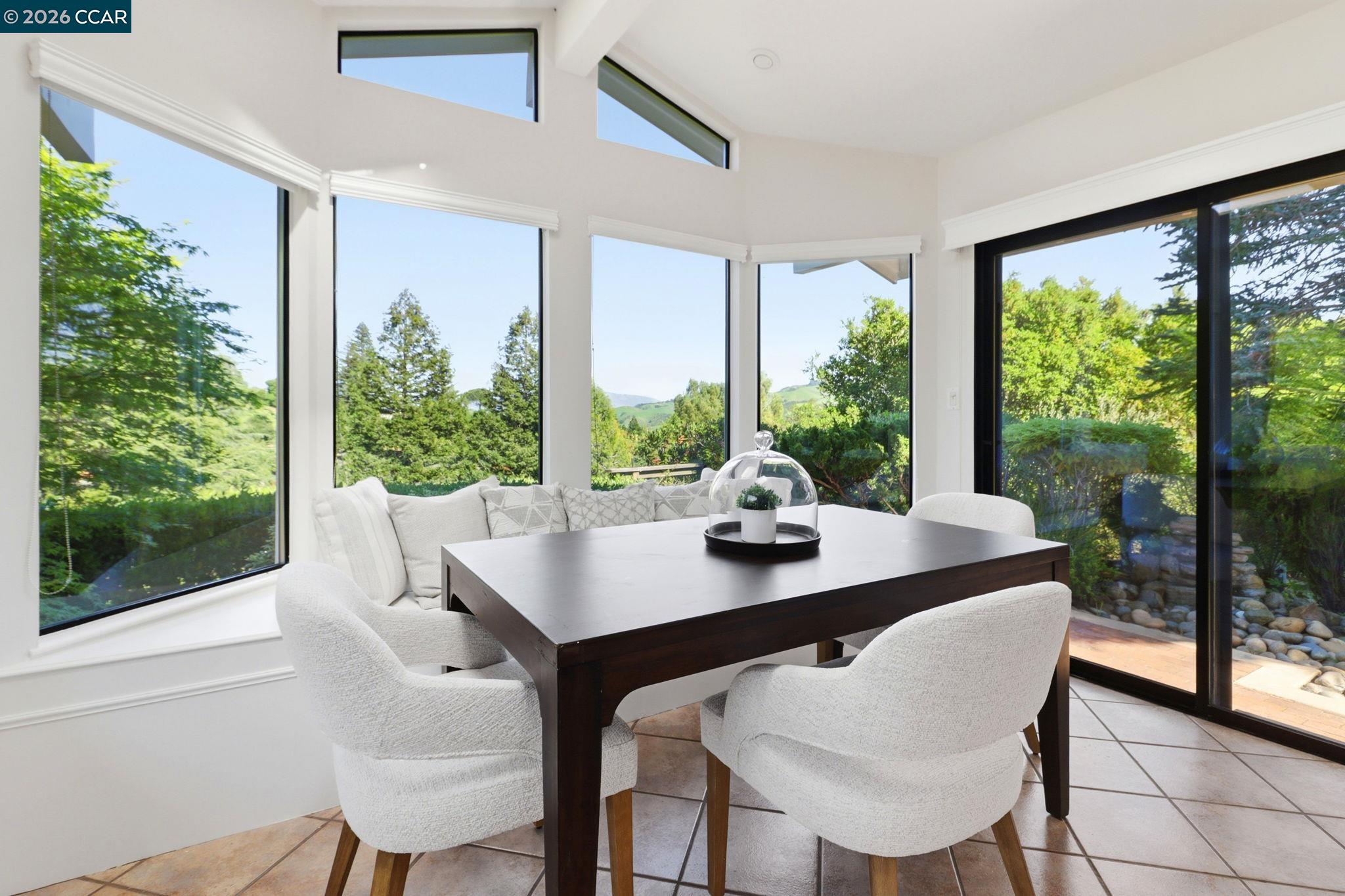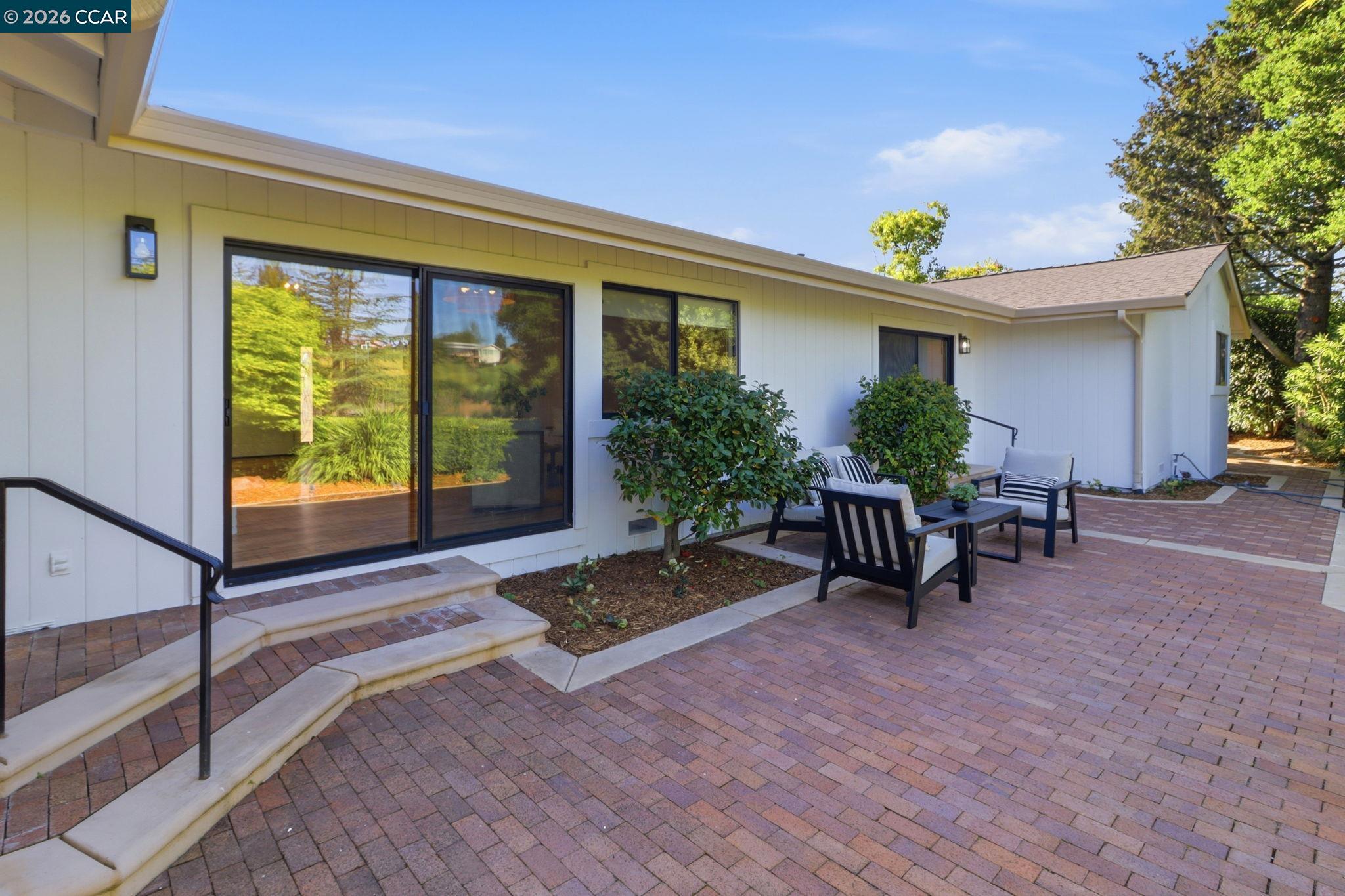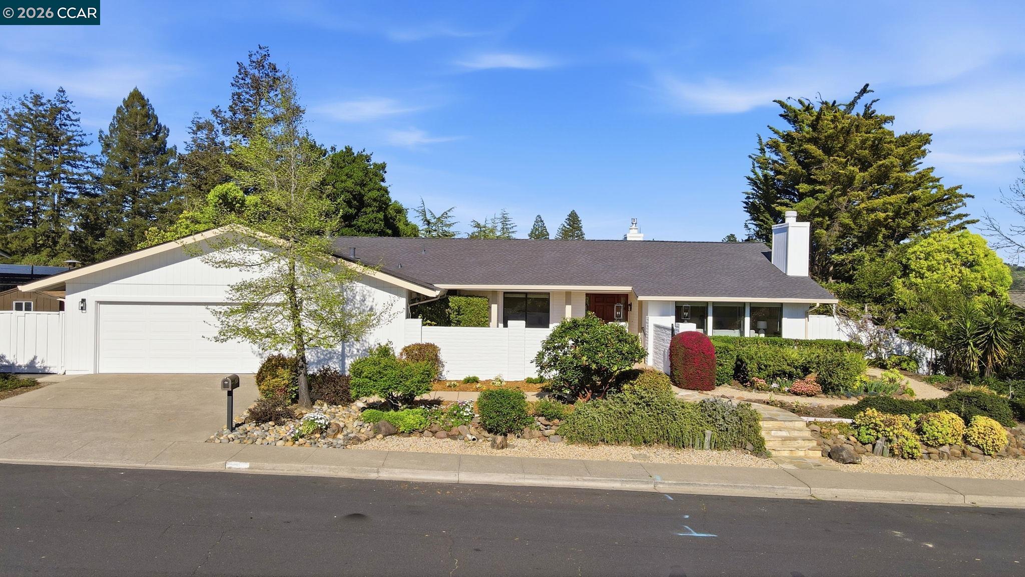 This gorgeous single level home with great views is located on a very desirable court and boasts a great curb appeal. The inviting open floorplan provides for easy living with a wonderful flow for indoor-outdoor entertaining. The sun-lit living room with a gas fireplace, hickory floors and high ceiling opens into the dining room. The spacious kitchen with an island boasts white cabinetry, dry bar area and breakfast nook with seating area. The family room is adjacent to the kitchen and provides direct access to the backyard. All bedrooms are located in the residential wing of the residence. The primary suite has a comfortable sitting room and access to a private deck, ideal for relaxation. The primary bathroom was just recently remodeled with a dual sink vanity, stone countertop, large shower and a walk-in closet. Two other bedrooms share a full hall bathroom. There is an additional office featuring built-in cabinetry & hardwood floors overlooking the courtyard. The amazing grounds are professionally landscaped with several beautiful venues, seasonal flowers, blooming plants, fountain and amazing views. Welcome to Moraga, a great community with award winning schools, parks, hiking & biking trails and the locals favorite Sunday Farmers Market!
