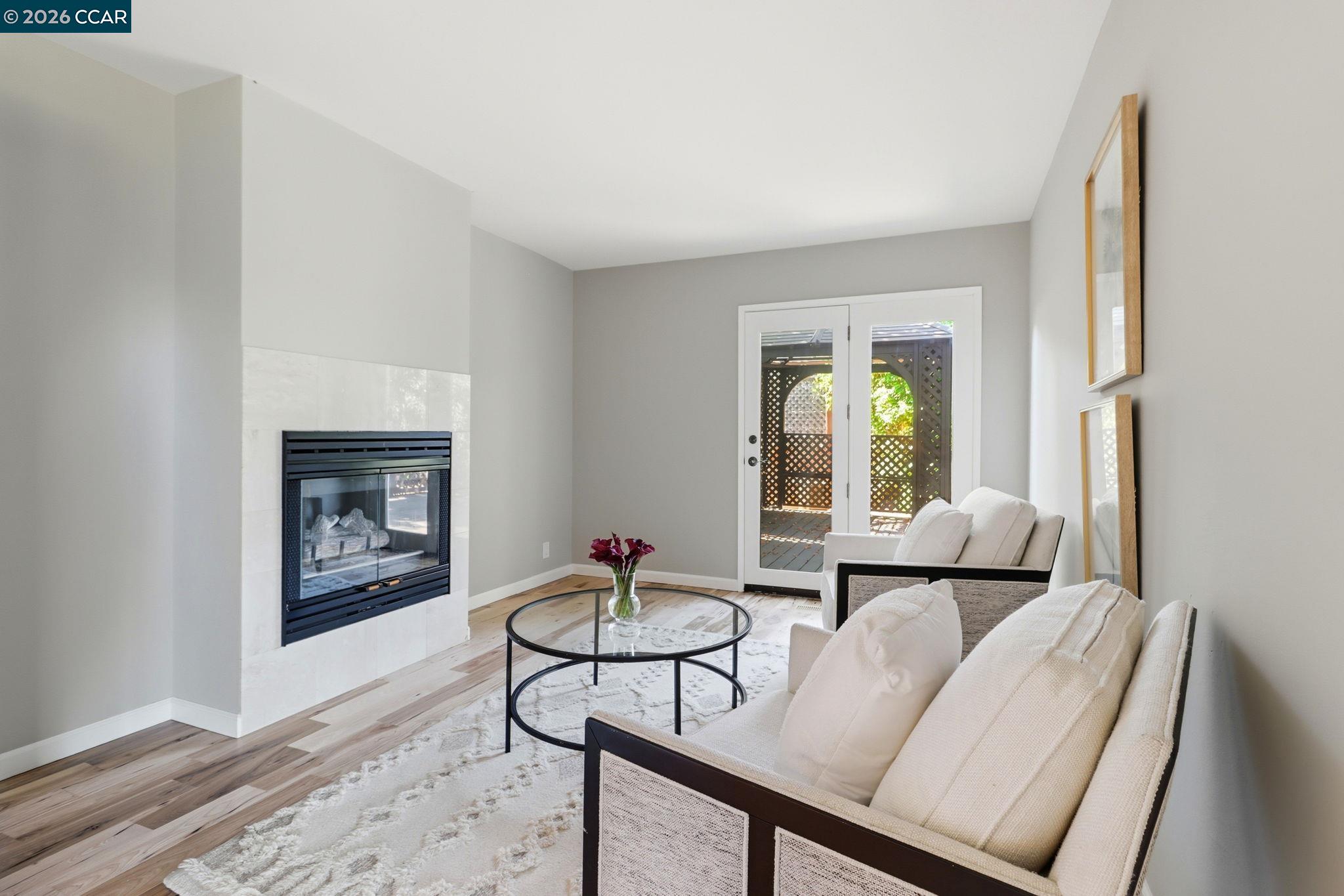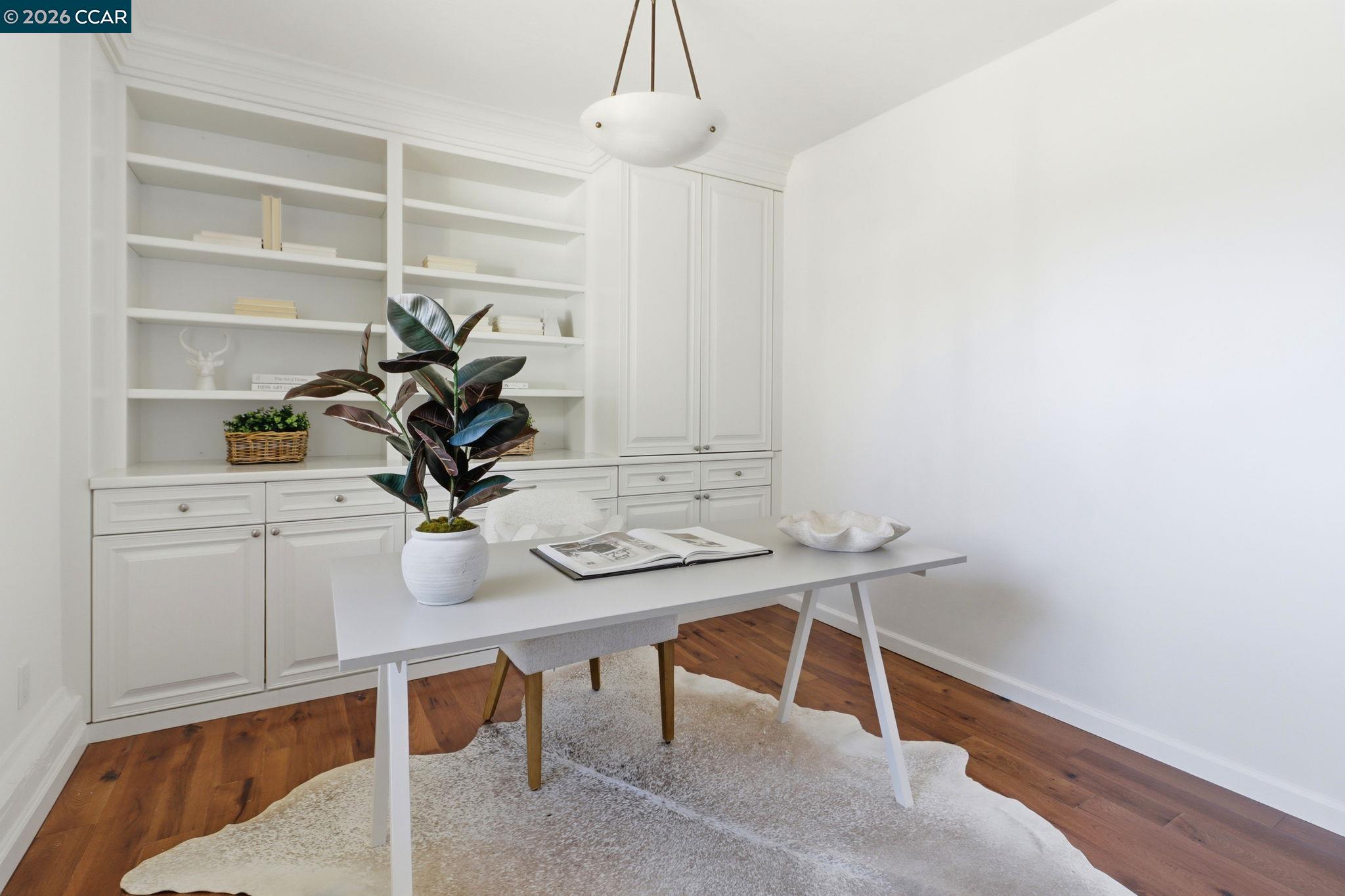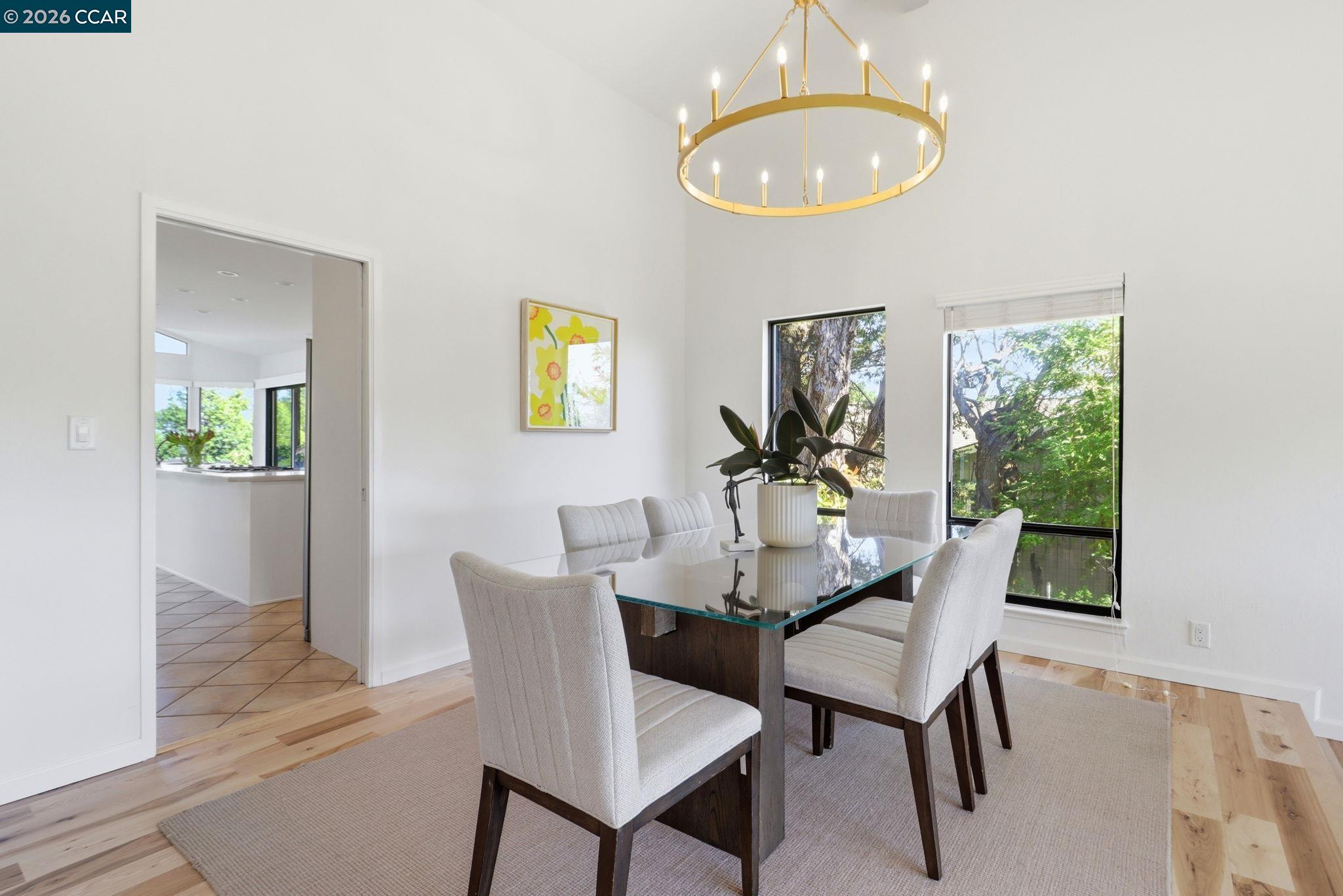This gorgeous single level home with great views is located on a very desirable court and boasts a great curb appeal. The inviting open floorplan provides for easy living with a wonderful flow for indoor-outdoor entertaining. The sun-lit living room with a gas fireplace, hickory floors and high ceiling opens into the dining room. The spacious kitchen with an island boasts white cabinetry, dry bar area and breakfast nook with seating area. The family room is adjacent to the kitchen and provides direct access to the backyard. All bedrooms are located in the residential wing of the residence. The primary suite has a comfortable sitting room and access to a private deck, ideal for relaxation. The primary bathroom was just recently remodeled with a dual sink vanity, stone countertop, large shower and a walk-in closet. Two other bedrooms share a full hall bathroom. There is an additional office featuring built-in cabinetry & hardwood floors overlooking the courtyard. The amazing grounds are professionally landscaped with several beautiful venues, seasonal flowers, blooming plants, fountain and amazing views. Welcome to Moraga, a great community with award winning schools, parks, hiking & biking trails and the locals favorite Sunday Farmers Market!