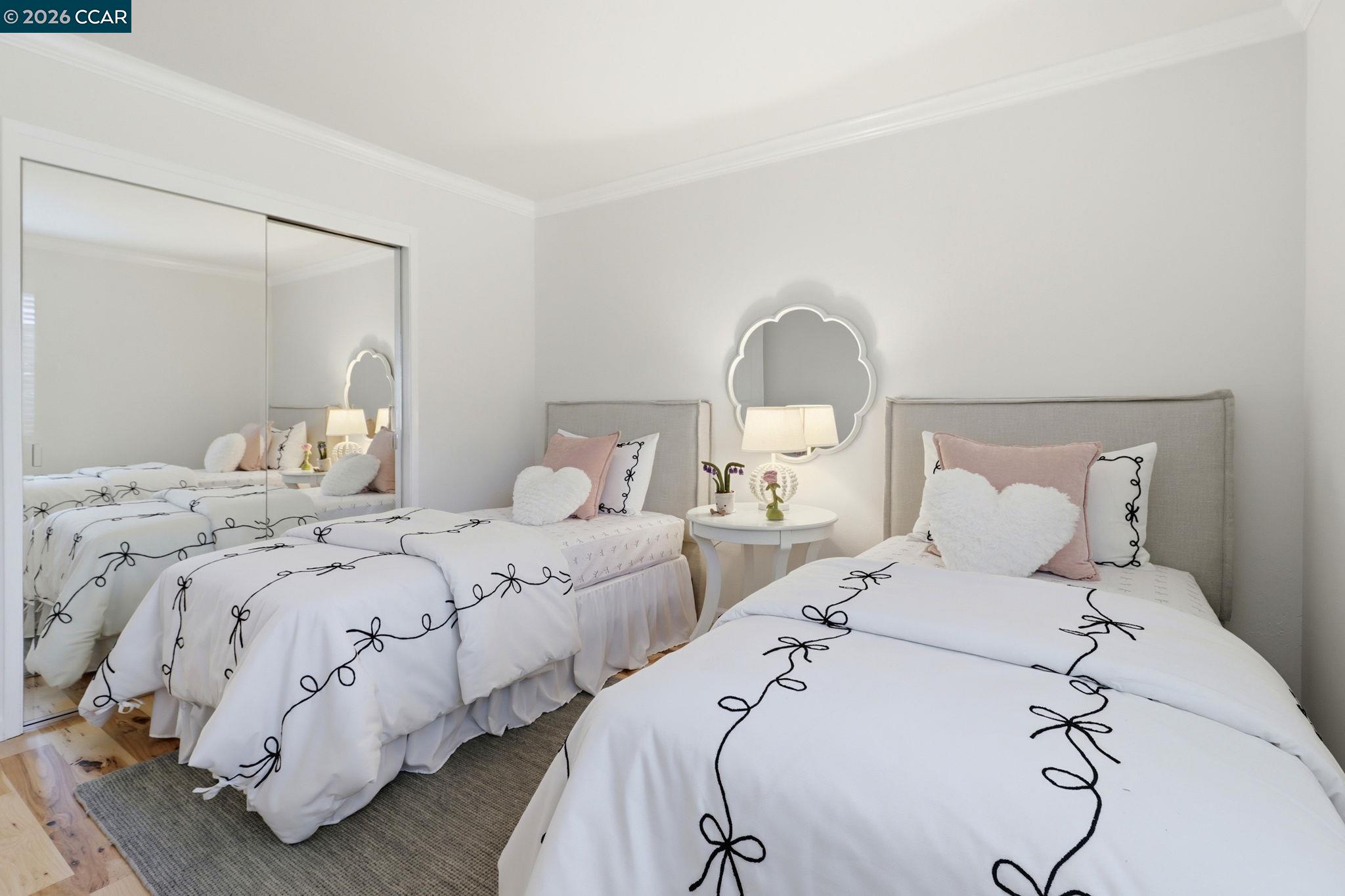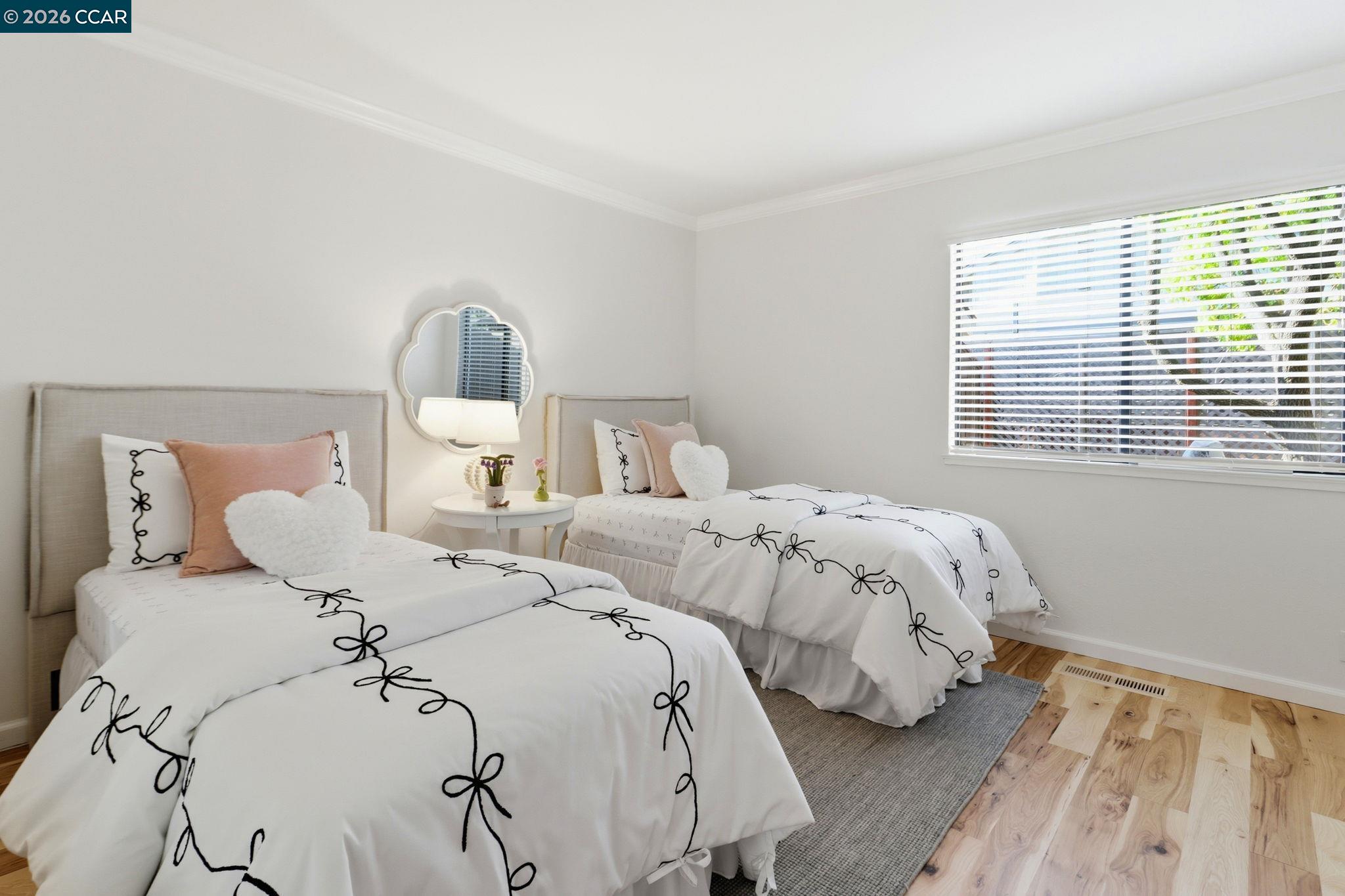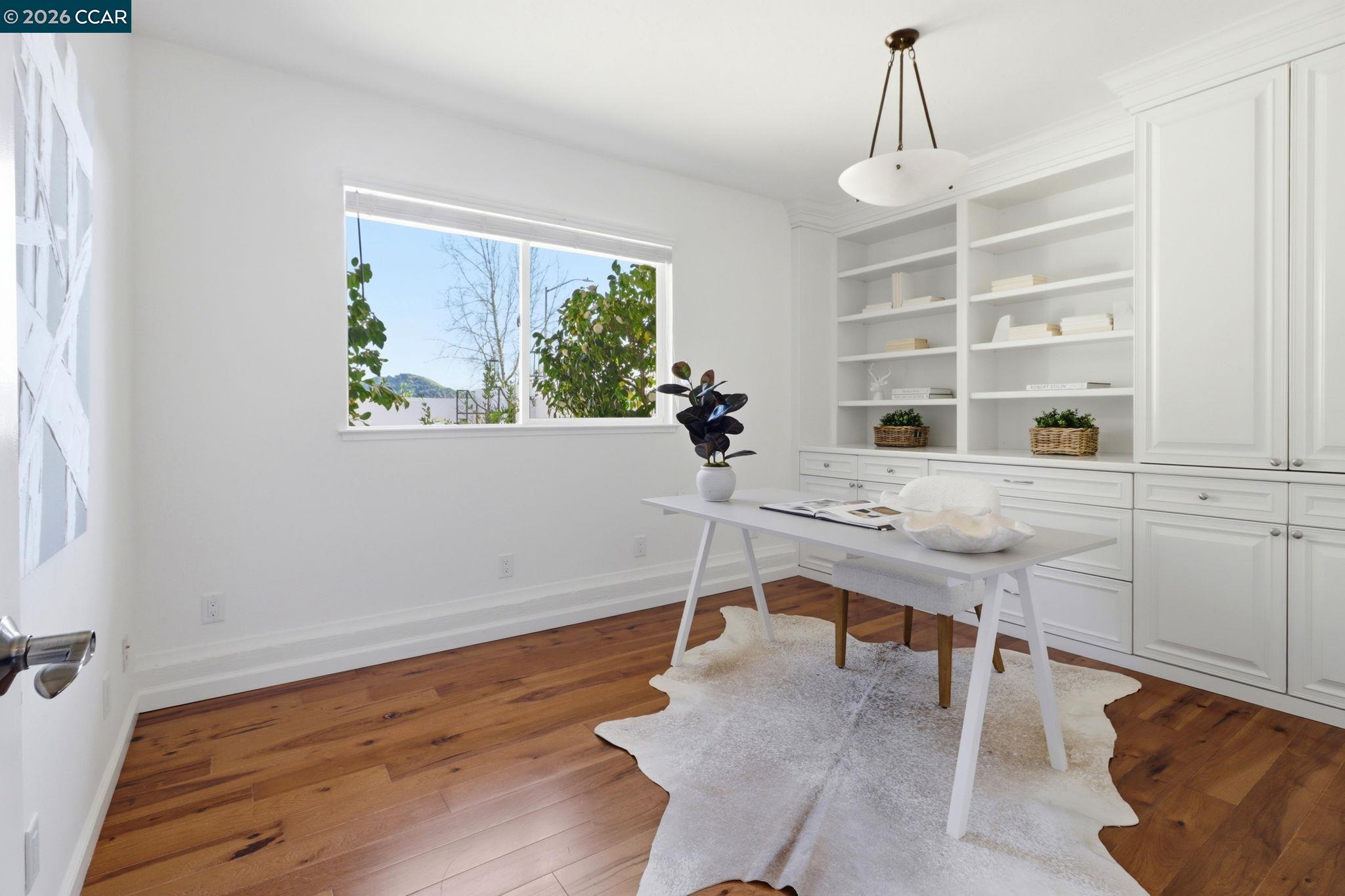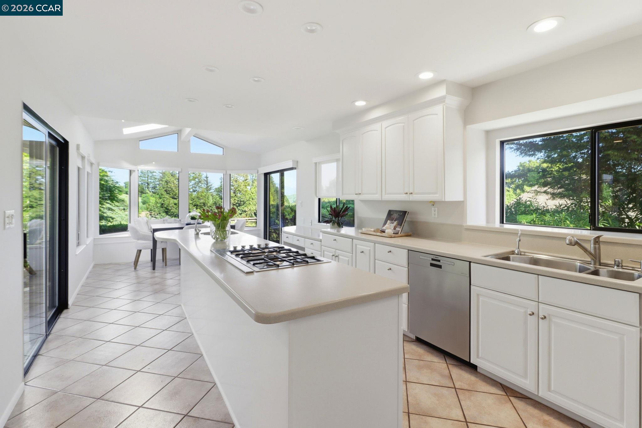 This gorgeous single level home with great views is located on a very desirable court and boasts a great curb appeal. The inviting open floorplan provides for easy living with a wonderful flow for indoor-outdoor entertaining. The sun-lit living room with a gas fireplace, hickory floors and high ceiling opens into the dining room. The spacious kitchen with an island boasts white cabinetry, dry bar area and breakfast nook with seating area. The family room is adjacent to the kitchen and provides direct access to the backyard. All bedrooms are located in the residential wing of the residence. The primary suite has a comfortable sitting room and access to a private deck, ideal for relaxation. The primary bathroom was just recently remodeled with a dual sink vanity, stone countertop, large shower and a walk-in closet. Two other bedrooms share a full hall bathroom. There is an additional office featuring built-in cabinetry & hardwood floors overlooking the courtyard. The amazing grounds are professionally landscaped with several beautiful venues, seasonal flowers, blooming plants, fountain and amazing views. Welcome to Moraga, a great community with award winning schools, parks, hiking & biking trails and the locals favorite Sunday Farmers Market!