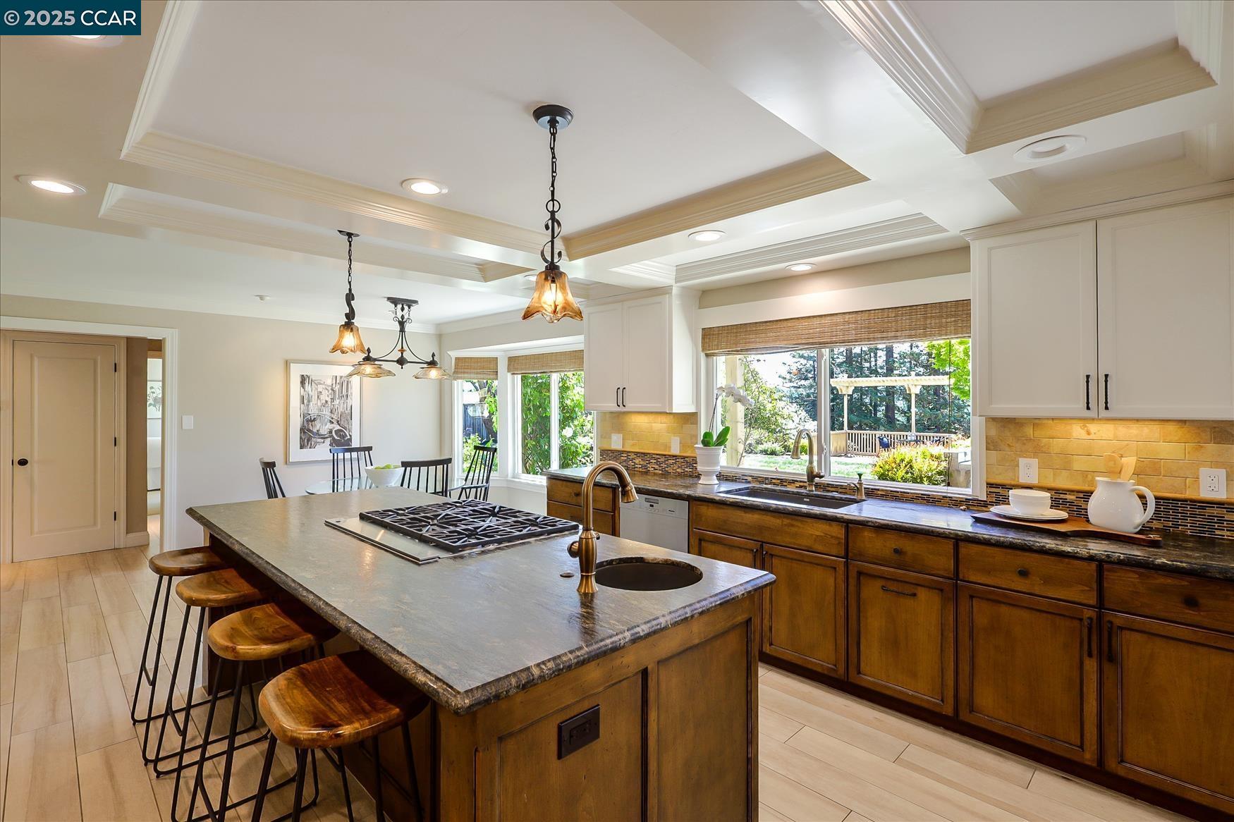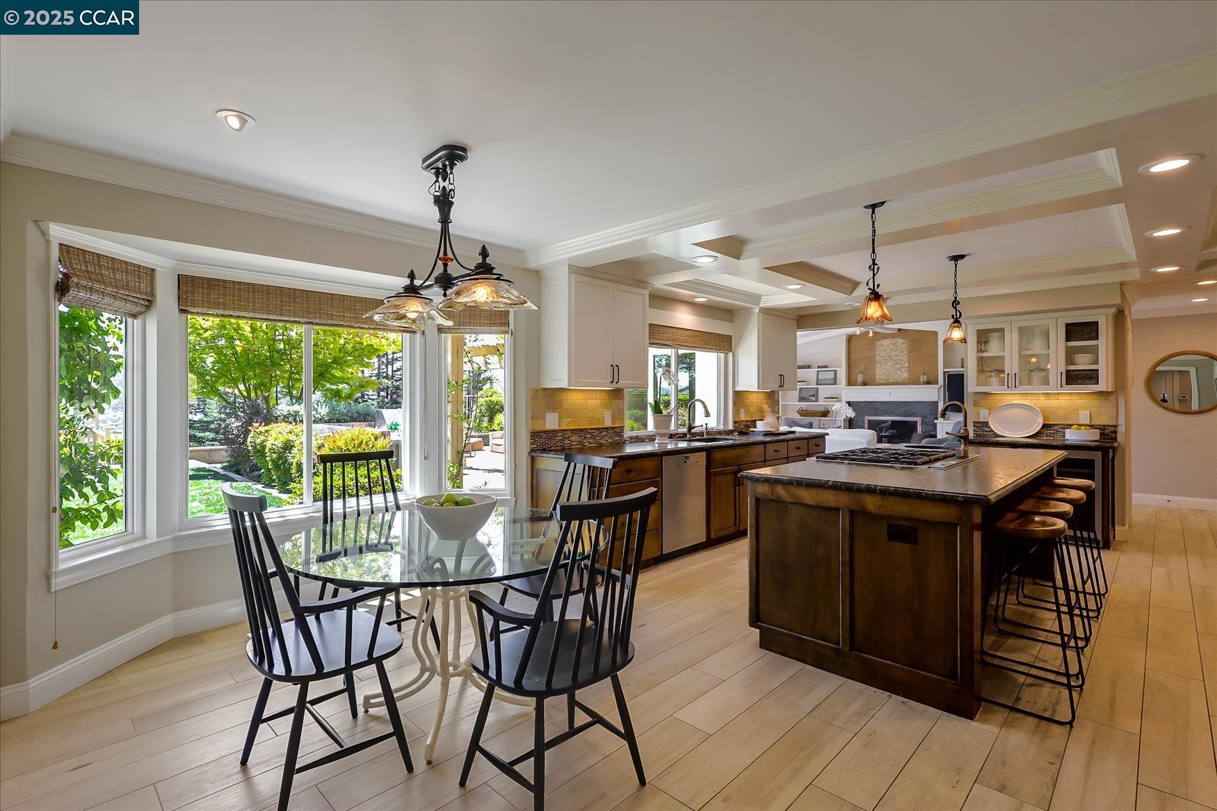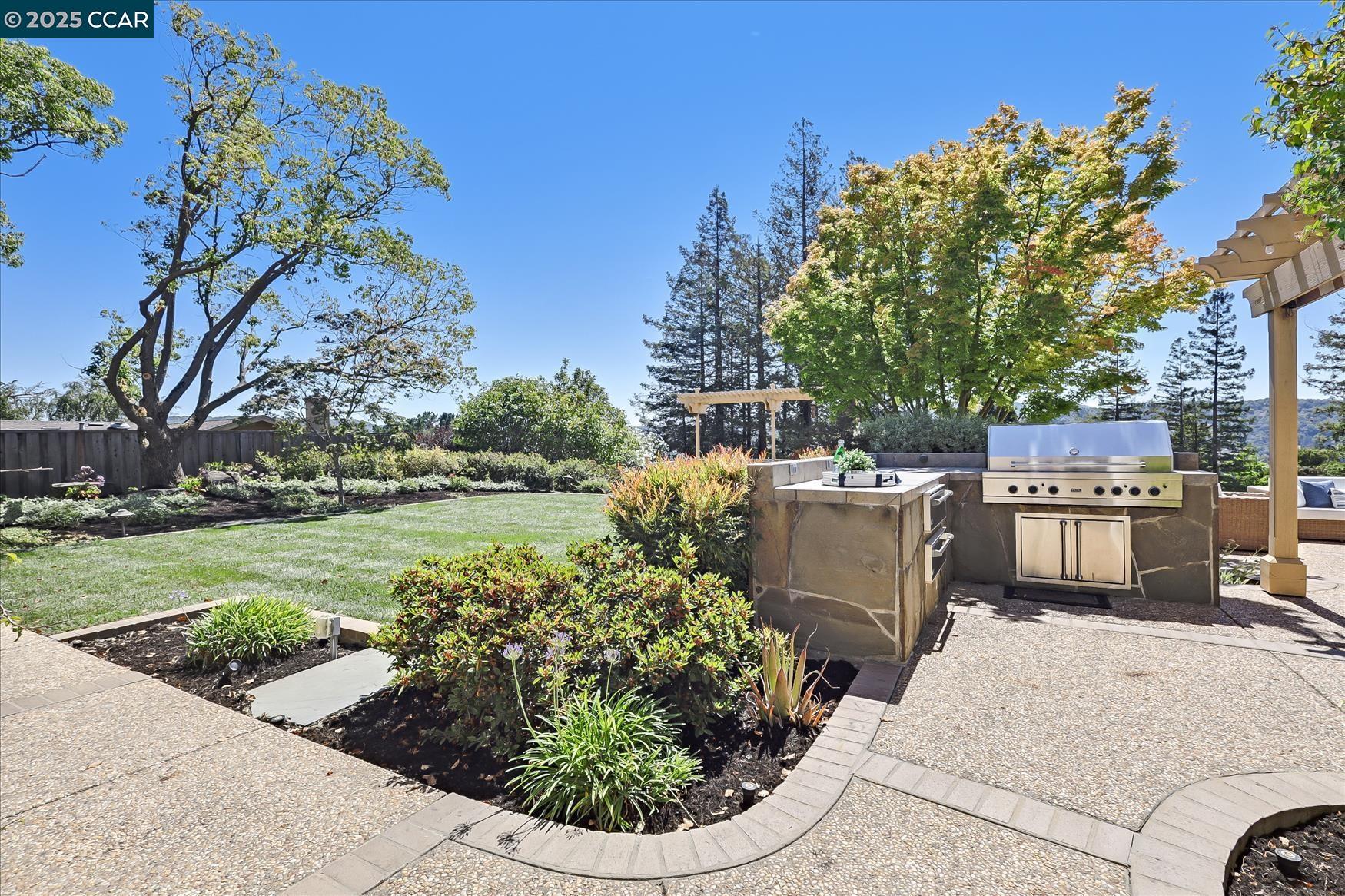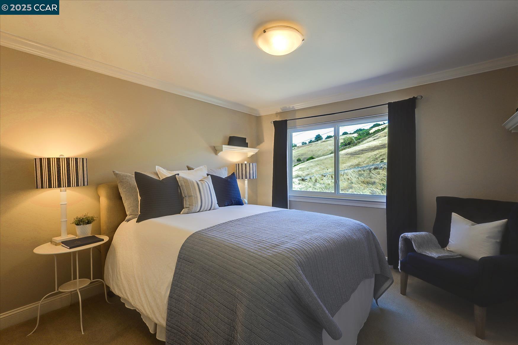 Fantastic home with great views at a highly desirable location, close to downtown and commute routes. Wonderful floorplan with porcelain tile floors, dual zone heating & air conditioning, bedroom and full bath on the main level, 3 car garage and solar. The remodeled Chef's kitchen features a large central island, stone countertops, custom cabinets, high-end appliances and a breakfast area. The generous family room is adjacent to the kitchen and provides a direct access to the backyard. The backyard features a built-in kitchen, lawn, gardens and amazing views. Top rated Moraga public schools. Apply with RentSpree https://apply.link/3dYuDok