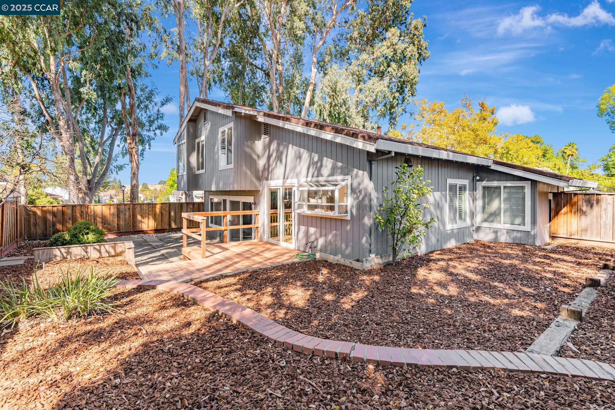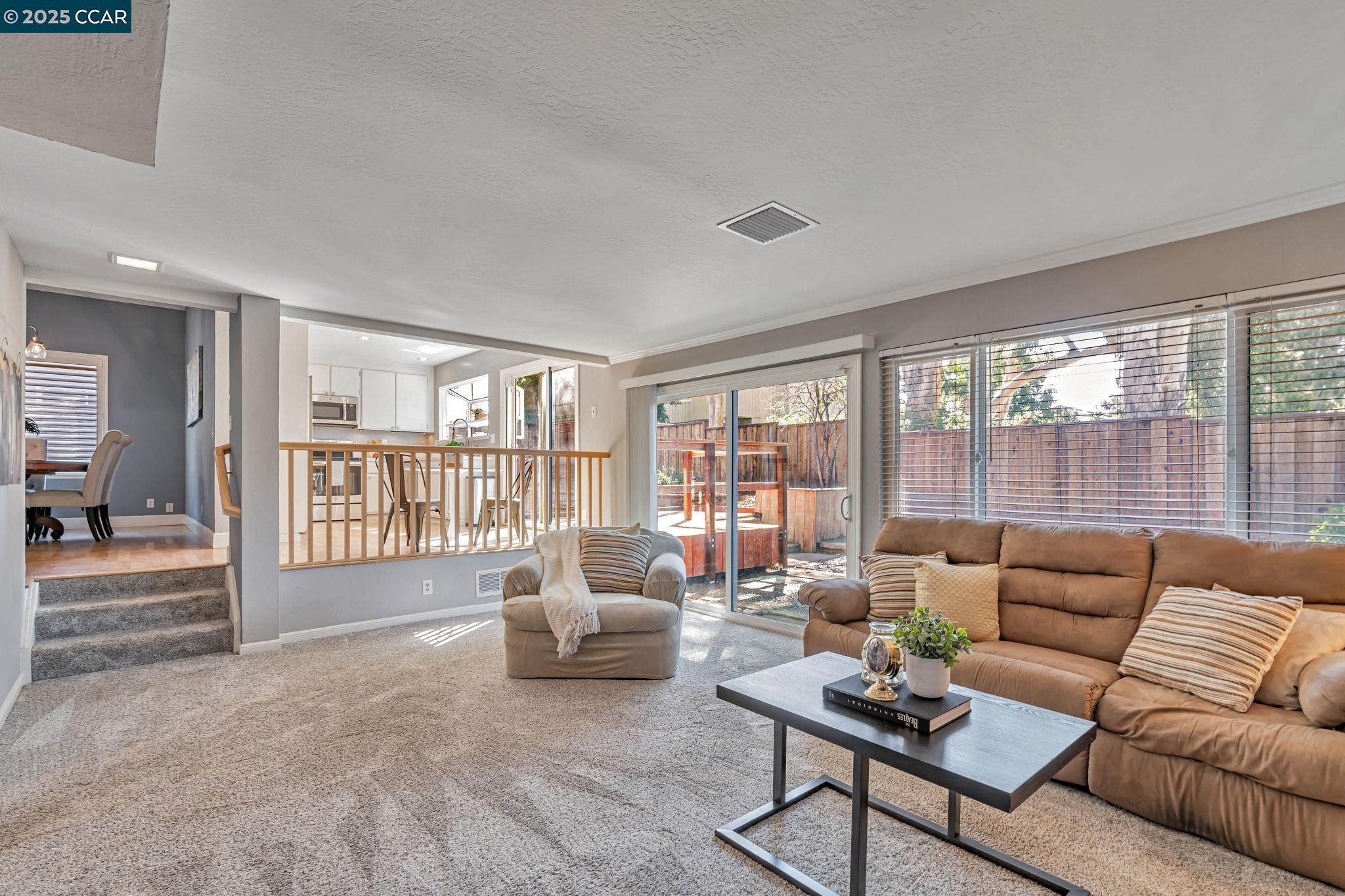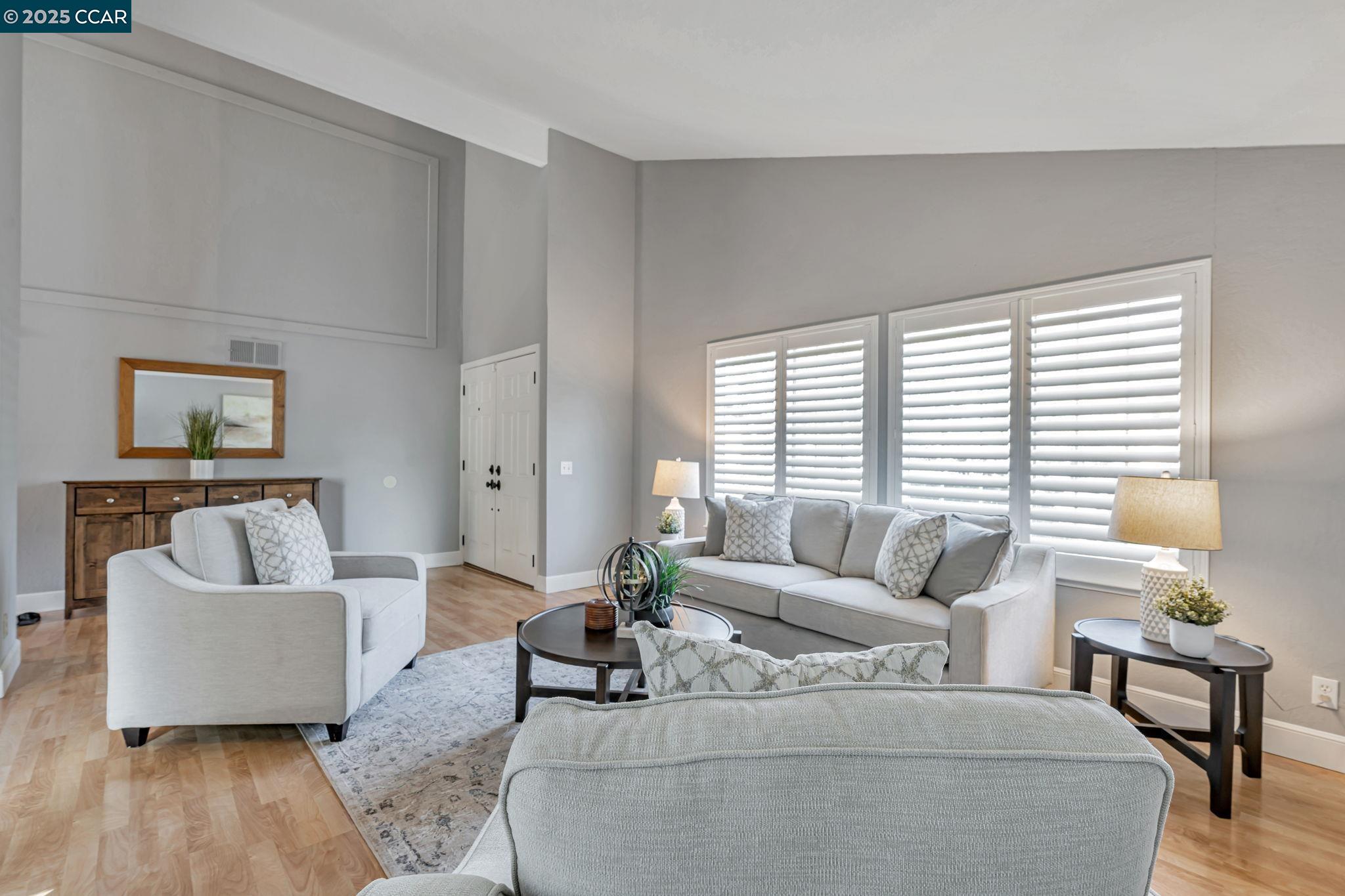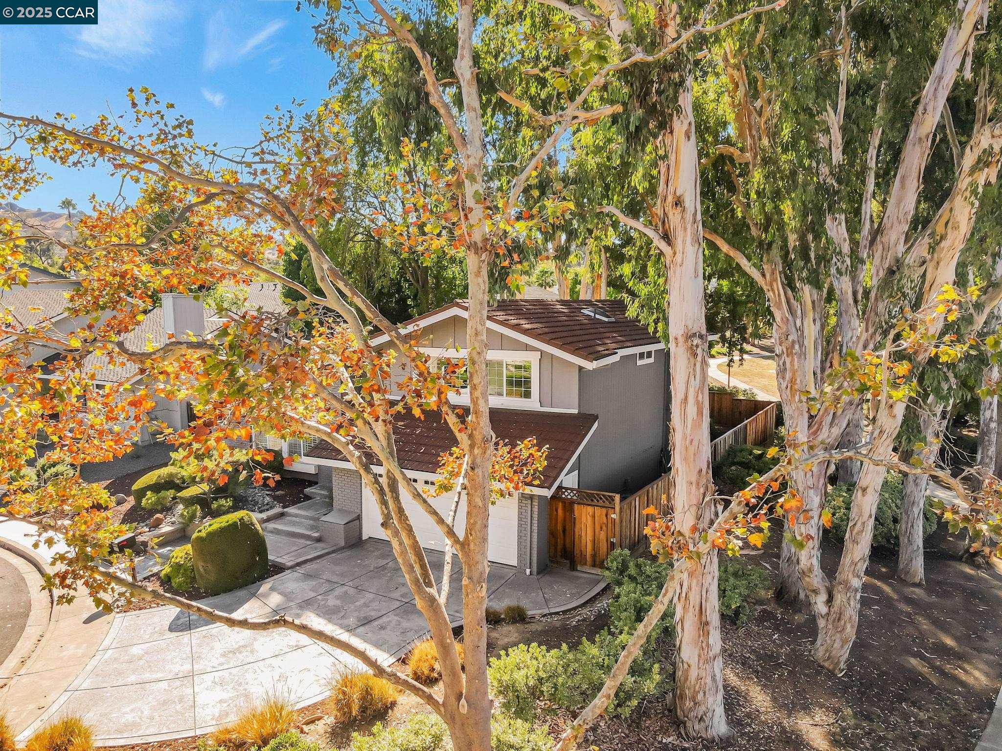 Welcome to your future home at the end of a charming cul-de-sac, nestled beside a tranquil Greenbelt in the Crossings. This spacious single-family home features 3 bedrooms and 2.5 baths, offering plenty of room for comfortable living. The living room and formal dining room boast stunning vaulted ceilings, creating an open and airy feel. The kitchen, complete with a nook, is perfect for casual meals, while the spacious family room offers a great space for relaxation by the cozy fireplace. The primary suite has vaulted ceilings, two closets and looks over the Greenbelt. This home is freshly updated with new carpets, custom plantation shutters, new Kitchen counter tops, newer appliances, and freshly painted exteriors and interiors, plus a brand-new driveway. Enjoy the benefits of a community with low HOA dues that grant you access to several pools, dog run, tennis and basketball courts, and a clubhouse. With convenient sidewalks you never have to worry when taking a stroll. This neighborhood feeds into the top-rated Walnut Creek Foothill Middle and Northgate High schools. Is close to BART and offers easy freeway access for commuters. This is a home that blends comfort, community, and convenience seamlessly.