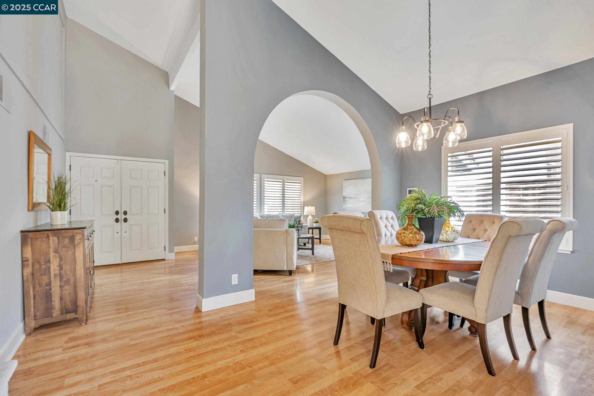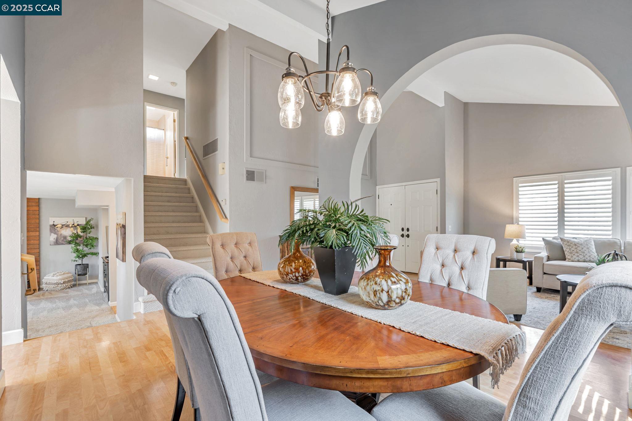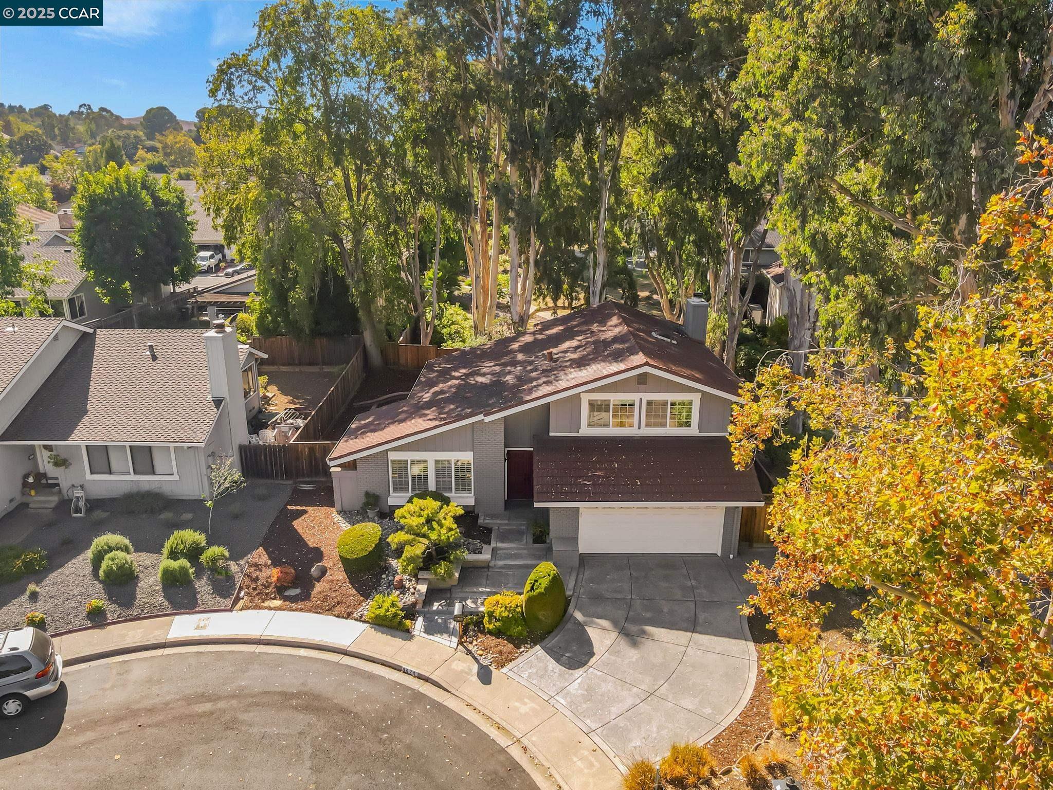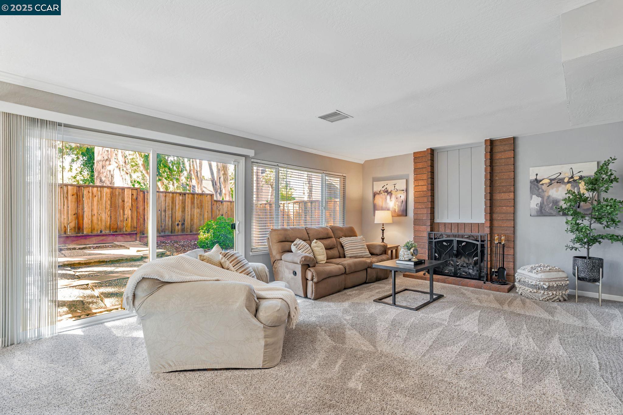Welcome to your future home at the end of a charming cul-de-sac, nestled beside a tranquil Greenbelt in the Crossings. This spacious single-family home features 3 bedrooms and 2.5 baths, offering plenty of room for comfortable living. The living room and formal dining room boast stunning vaulted ceilings, creating an open and airy feel. The kitchen, complete with a nook, is perfect for casual meals, while the spacious family room offers a great space for relaxation by the cozy fireplace. The primary suite has vaulted ceilings, two closets and looks over the Greenbelt. This home is freshly updated with new carpets, custom plantation shutters, new Kitchen counter tops, newer appliances, and freshly painted exteriors and interiors, plus a brand-new driveway. Enjoy the benefits of a community with low HOA dues that grant you access to several pools, dog run, tennis and basketball courts, and a clubhouse. With convenient sidewalks you never have to worry when taking a stroll. This neighborhood feeds into the top-rated Walnut Creek Foothill Middle and Northgate High schools. Is close to BART and offers easy freeway access for commuters. This is a home that blends comfort, community, and convenience seamlessly.