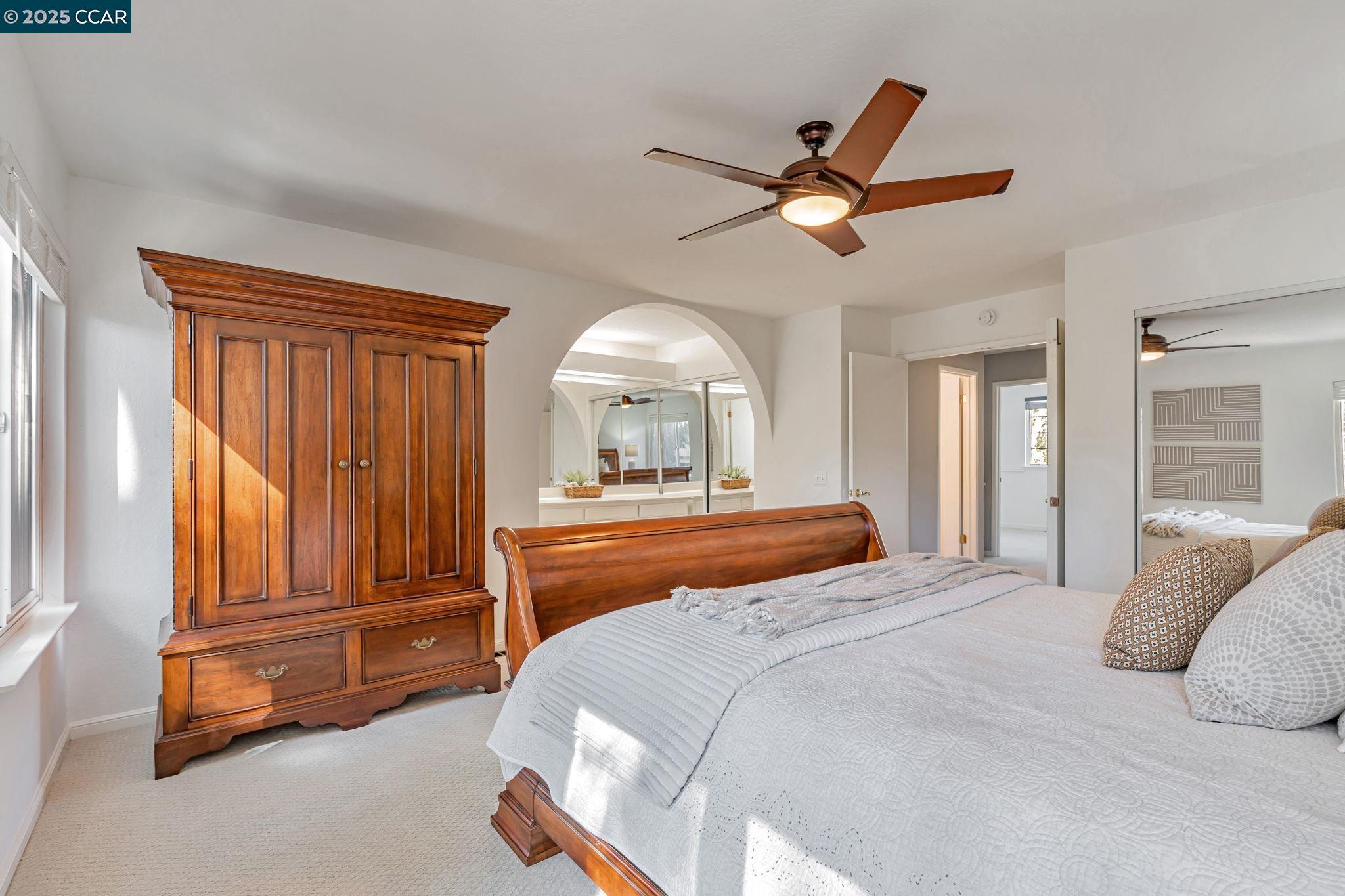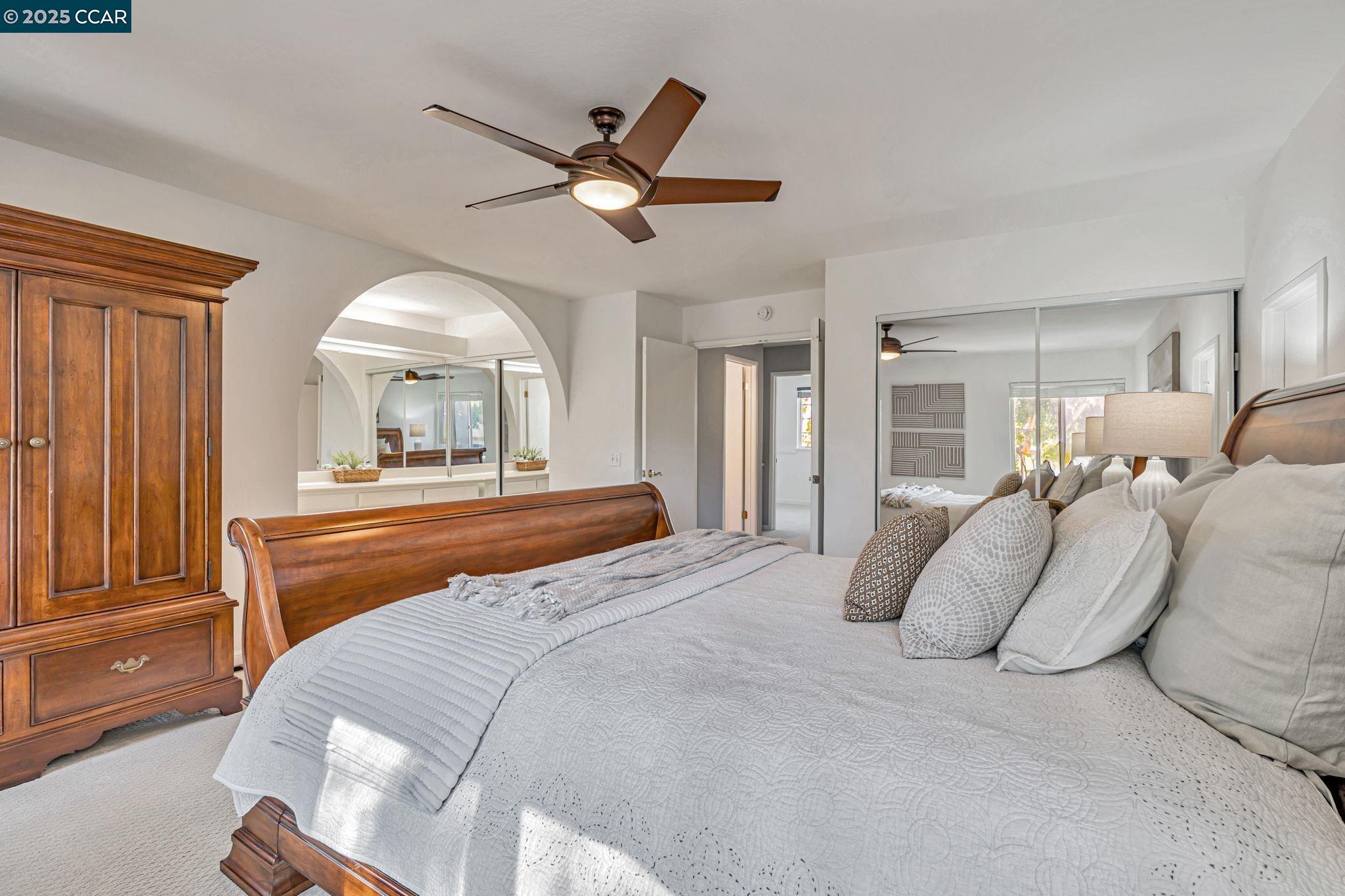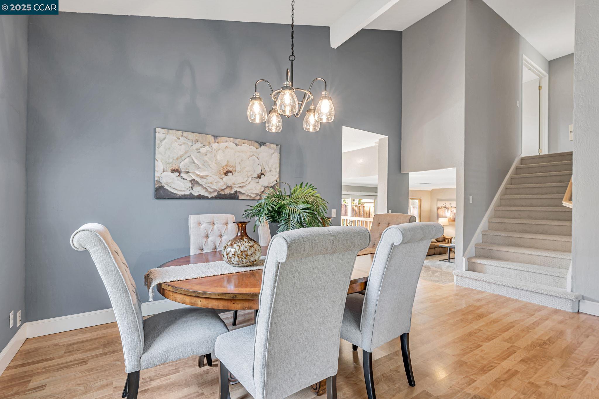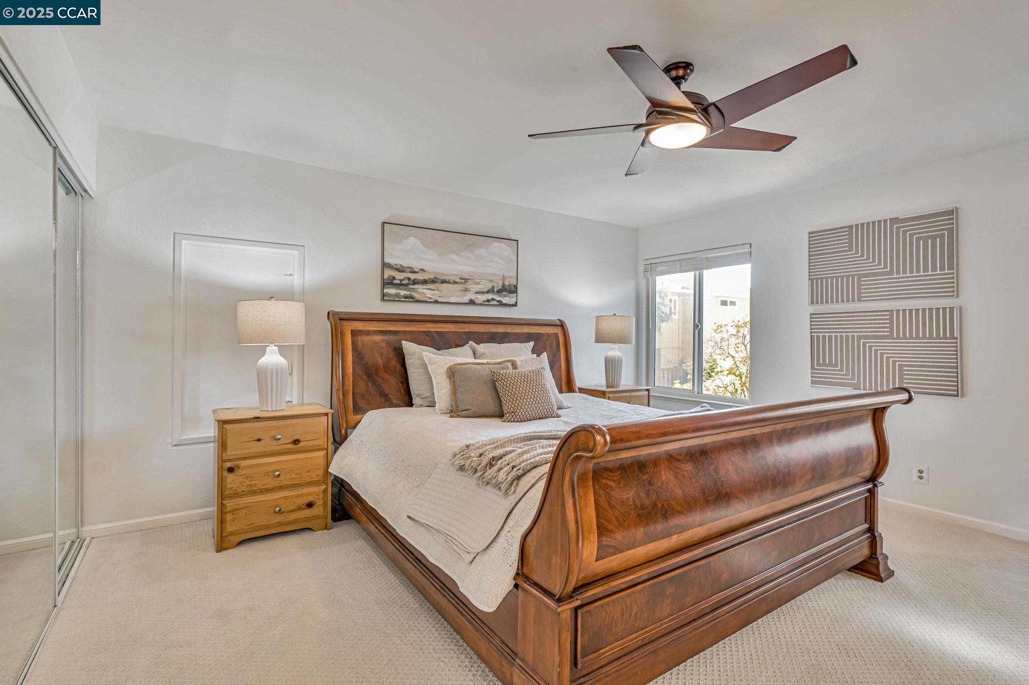 Welcome to your future home at the end of a charming cul-de-sac, nestled beside a tranquil Greenbelt in the Crossings. This spacious single-family home features 3 bedrooms and 2.5 baths, offering plenty of room for comfortable living. The living room and formal dining room boast stunning vaulted ceilings, creating an open and airy feel. The kitchen, complete with a nook, is perfect for casual meals, while the spacious family room offers a great space for relaxation by the cozy fireplace. The primary suite has vaulted ceilings, two closets and looks over the Greenbelt. This home is freshly updated with new carpets, custom plantation shutters, new Kitchen counter tops, newer appliances, and freshly painted exteriors and interiors, plus a brand-new driveway. Enjoy the benefits of a community with low HOA dues that grant you access to several pools, dog run, tennis and basketball courts, and a clubhouse. With convenient sidewalks you never have to worry when taking a stroll. This neighborhood feeds into the top-rated Walnut Creek Foothill Middle and Northgate High schools. Is close to BART and offers easy freeway access for commuters. This is a home that blends comfort, community, and convenience seamlessly.